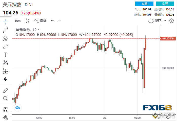 美元指數15分鐘走勢圖,來源:FX168)